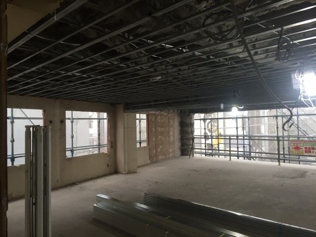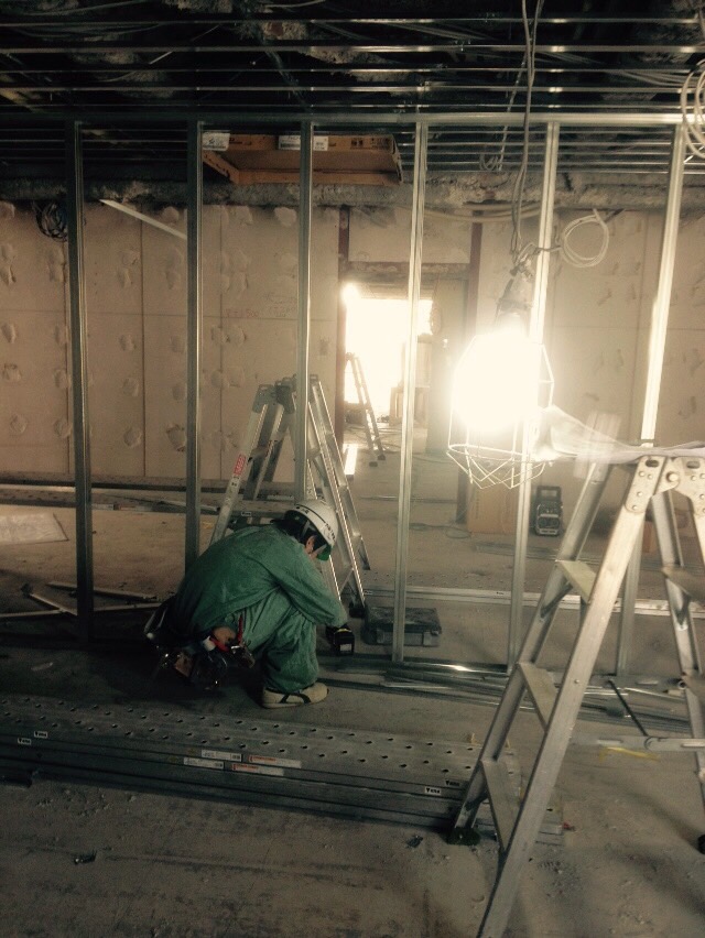 事務所 間仕切り工事 なかなか細かい、若手が,頑張ってます。